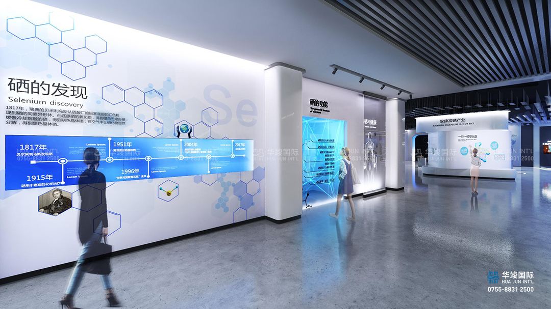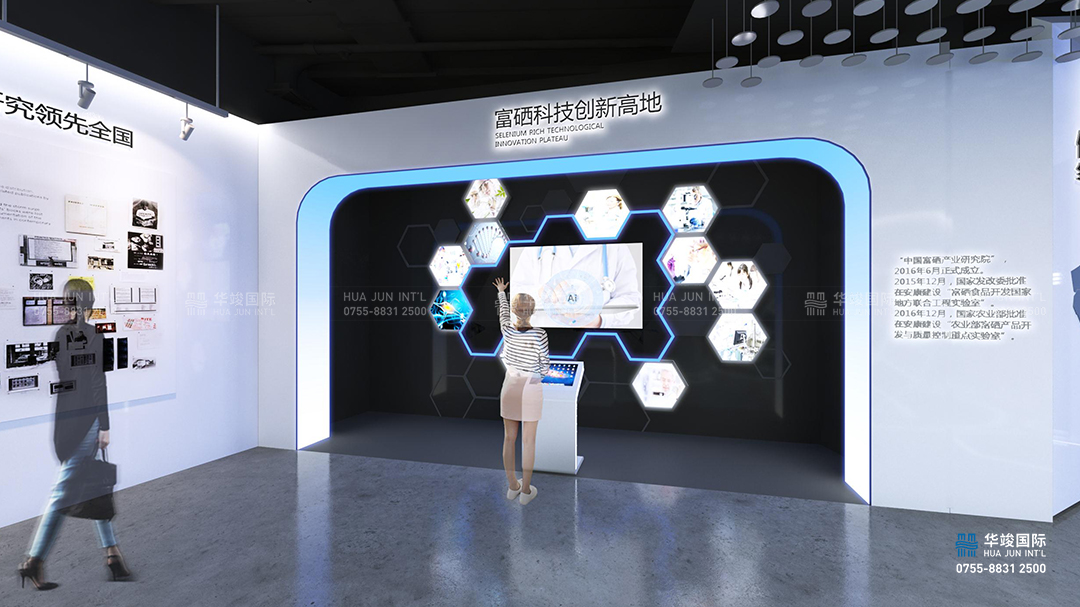 安康是國內主要的天然富硒區,作為國家對外開放的重點,正借助“一帶一路”將富硒產業推向全球。安康市富硒產品研發中心展廳設計以科技創新、綠色共享為理念,圍繞健康新“硒”望的主題,對中國富硒產業研究展館進行內容梳理與創意展示;體現安康市“以硒興城”,打造“世界硒源地,國際健康城”的區域品牌戰略重點。