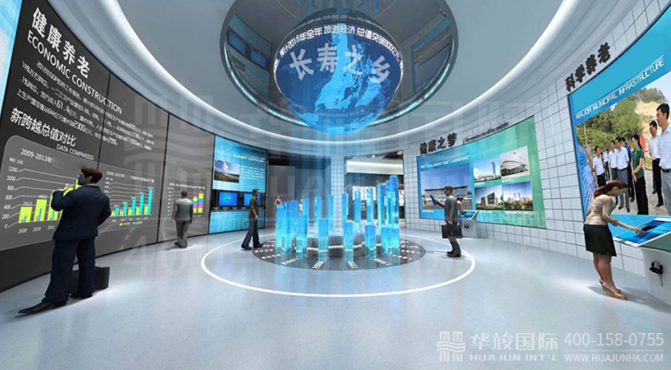 數(shù)字技術(shù): 壁掛沙盤 、 LED查詢觸控屏 、 虛擬講解 、 沉浸式弧幕影院等