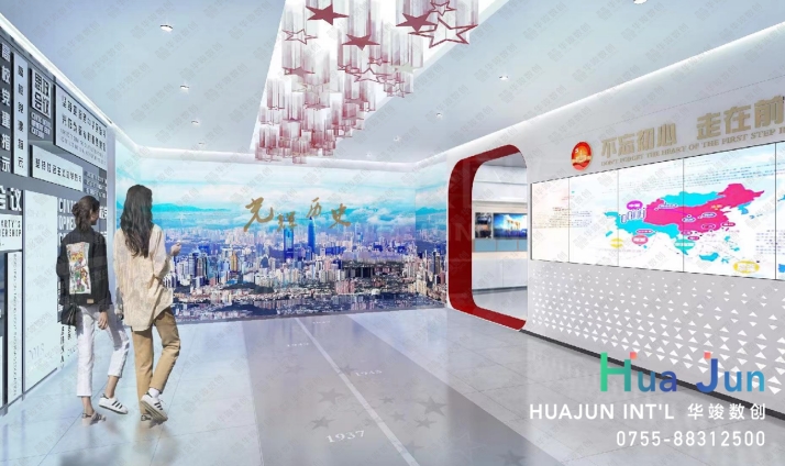 數(shù)字技術(shù): 玻璃幕墻 、 270度弧幕影院 、 互動拍照摳像系統(tǒng)等